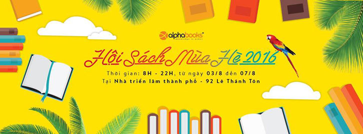 Hội sách Mùa hè 2016 do Alpha Books tổ chức với sự đồng hành của hơn 10 đơn vị xuất bản khác sẽ diễn ra từ ngày 03/8 đến ngày 7/8/2016 tại Nhà triển lãm Thành phố (92 Lê Thánh Tôn, Quận 1).